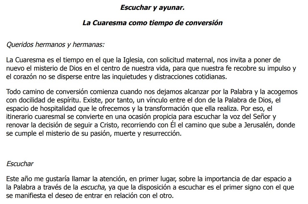 NoticiasMENSAJE DEL SANTO PAPA LEÓN XIV PARA LA CUARESMA 202611 de Marzo de 2026"La cuaresma como tiempo de conversión" mensaje_del_santo_padre_leon_xiv_para_la_cuaresma_de_2026.pdf Like 1 Dislike 0